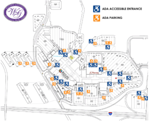 ADA accessible entrances and designated parking is available at every mall entrance. Automatic doors equipped at every main entrance. Wheelchairs available free of charge. Reserved special needs washrooms. All service dogs allowed.